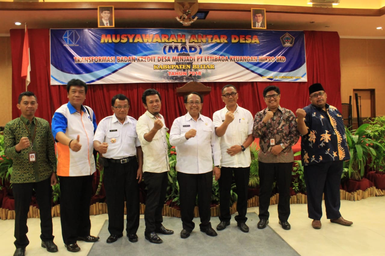 Blitar – Musyawarah Antar Desa (MAD) kali ini adalah, terkait Transformasi Badan Kredit Desa (BKD) menjadi PT Lembaga Keuangan Mikro (LKM) dan sekaligus menerima ijin usaha lembaga mikro menjadi PT. LKM BKD dari Otoritas Jasa Keuangan(OJK) Kediri. Adapun musyawarah digelar pada tanggal 12 Desember 2018 kemarin di Hotel Grand Masion Kota Blitar.