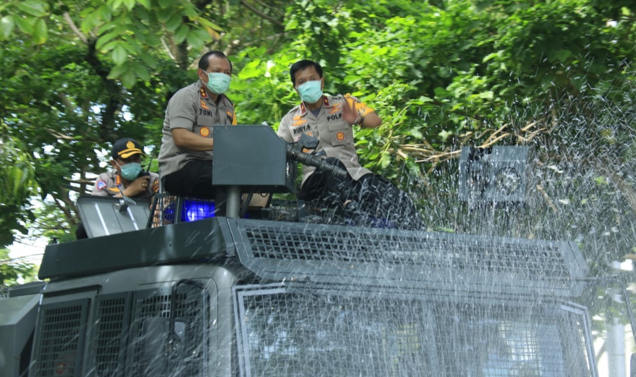 Polda Sumbar melakukan penyemprotan di ruas jalan umum Kota Padang yang dipimpin Kapolda Sumbar Irjen Pol Drs. Toni Harmanto, MH, dengan diikuti oleh Wakapolda Brigjen Pol Rudy Sumardiyanto, M.Si, dan pejabat utama Polda Sumbar.