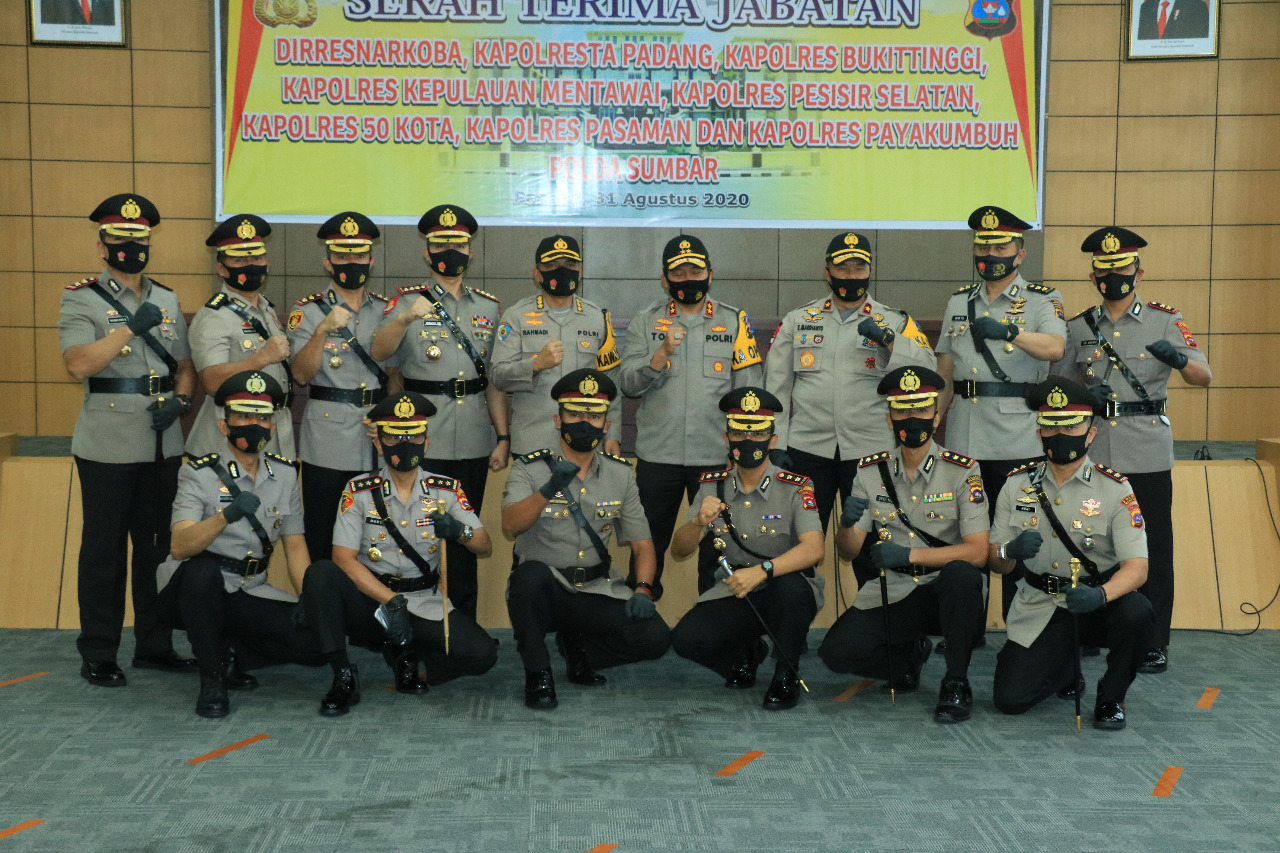 Pertama, jabatan Dirnarkoba Polda Sumbar dari Kombes Pol Ma’mun, S.Ik diserahkan kepada Kombes Pol Wahyu Sri Bintoro, SH. S.Ik. Kombes Pol Ma’mun. Kemudian jabatan Kapolresta Padang dari Kombes Pol Yulmar Try Himawan, S.Ik. M.Si diserahkan kepada AKBP Imran Amir, S.Ik. MH.
