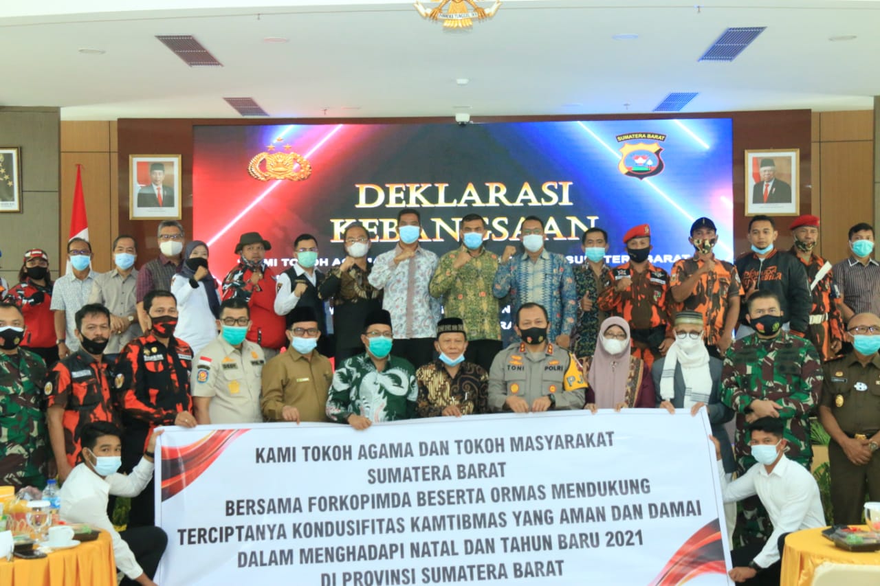 Dalam kegiatan tersebut, juga dilakukan pembacaan deklarasi kebangsaan bersama oleh semua undangan yang hadir. Bunyi deklarasi tersebut “Kami Tokoh Agama dan Tokoh Masyarakat Sumatera Barat bersama Forkopimda beserta Ormas Mendukung Terciptanya Kondusifitas Kamtibmas yang Aman dan Damai dalam Menghadapi Natal dan Tahun Baru 2021 di Provinsi Sumatera Barat.