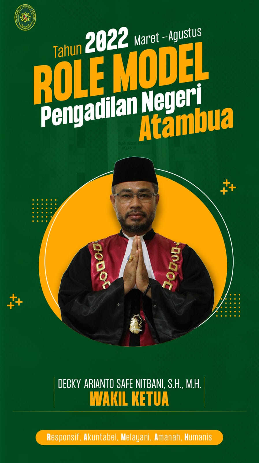 Catatan : Wakil Ketua Pengadilan(PN ) Kelas IB Atambua, Decky A Safe Nitbani, SH, MH yakni, (5 T). Terima, Tanggap, Tindak, Tegas, Tuntaskan.(Dami Atok)