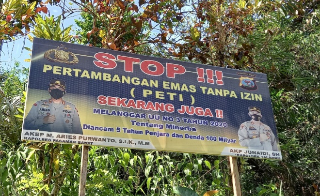 Faktanya, pihak kepolisian dalam hal ini Kapolres Pasaman Barat AKBP M. Aries Purwanto dan Kapolsek Talamau AKP Junaidi sudah melarang keras aktivitas PETI dengan pemasangan spanduk di jalan masuk ke Jorong Tombang, Nagari Sinuruik, tapi PETI tetap saja beroperasi.
