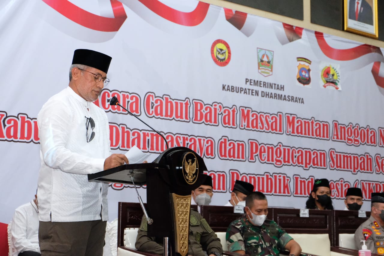 Sumbar – 391 warga yang sebelumnya tergabung dalam NII (Negara Islam Indonesia), melakukan cabut bai’at untuk kembali ke Negara Kesatuan Republik Indonesia (NKRI).