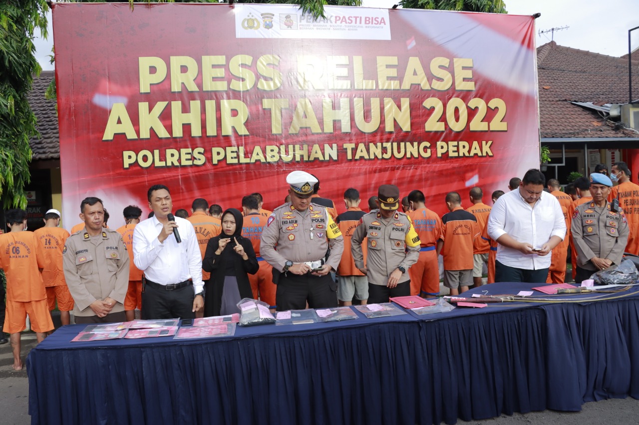 Surabaya – Kepolisian Resor Polres Pelabuhan Tanjung Perak Surabaya, Polda Jatim, mengungkap sebanyak 250 kasus penyalahgunaan peredaran narkoba selama Januari hingga akhir tahun 2022, yang terjadi di wilayah hukum Polres setempat.