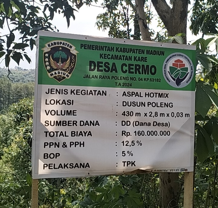 Madiun,deliknews.com – Melalui program Dana Desa Tahun Anggaran 2024, jalan lingkungan di Dusun Poleng Desa Cermo Kecamatan Kare Kabupaten Madiun kini menjadi mulus setelah diaspal hotmix.
