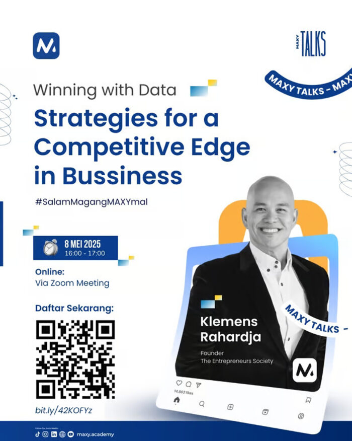 Melihat urgensi tersebut, MAXY Academy kembali menggelar forum edukasi MAXY Talk dengan tema “Winning with Data: Strategies for a Competitive Edge in Business”, menghadirkan langsung praktisi bisnis dan pendiri The Entrepreneurs Society, Klemens Rahardja.