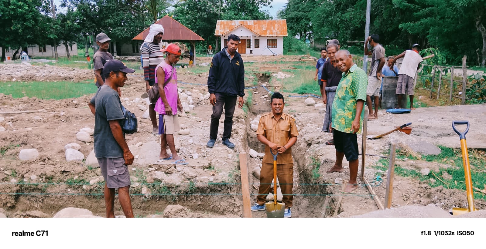 Oleh karena itu, kemarin kita sudah memulai kegiatan pembangunya ditandai dengan peletakan Batu pertama dan disaksikan oleh Pendamping Desa, Ketua BPD, aparat Desa dan masyarakat setempat.