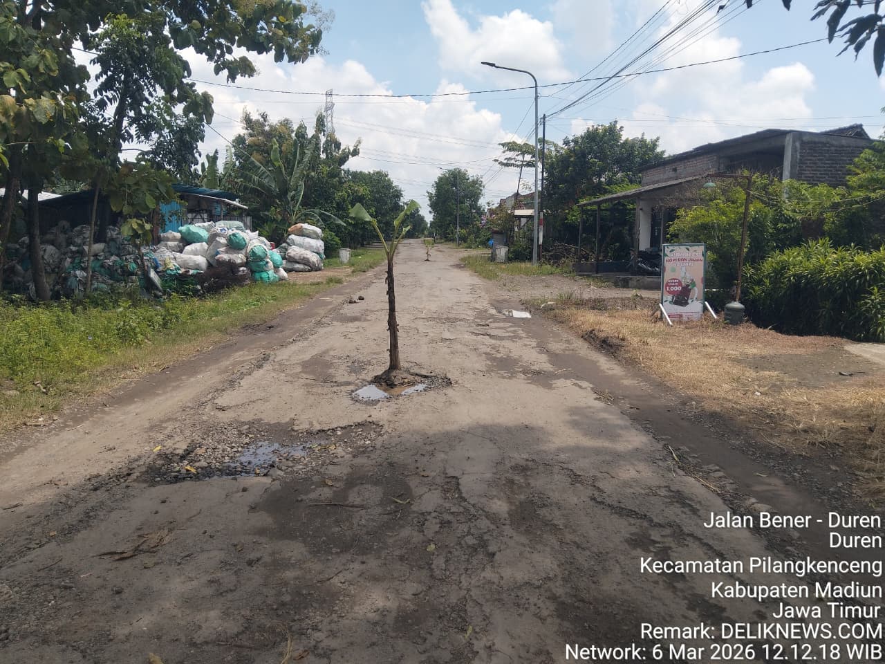 Madiun,deliknews.com – Bentuk protes akibat jalan rusak yang tak kunjung ada perbaikan warga Dusun Kutukan Desa Duren Kecamatan Pilangkenceng tanam pohon pisang. Kamis (06/03/2026)