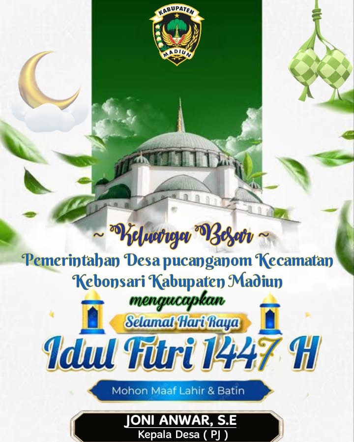 Keluarga Besar Pemerintahan Desa Pucanganom Kecamatan Kebonsari Kabupaten Madiun mengucapkan Selamat Hari Raya Idul Fitri 1447 H