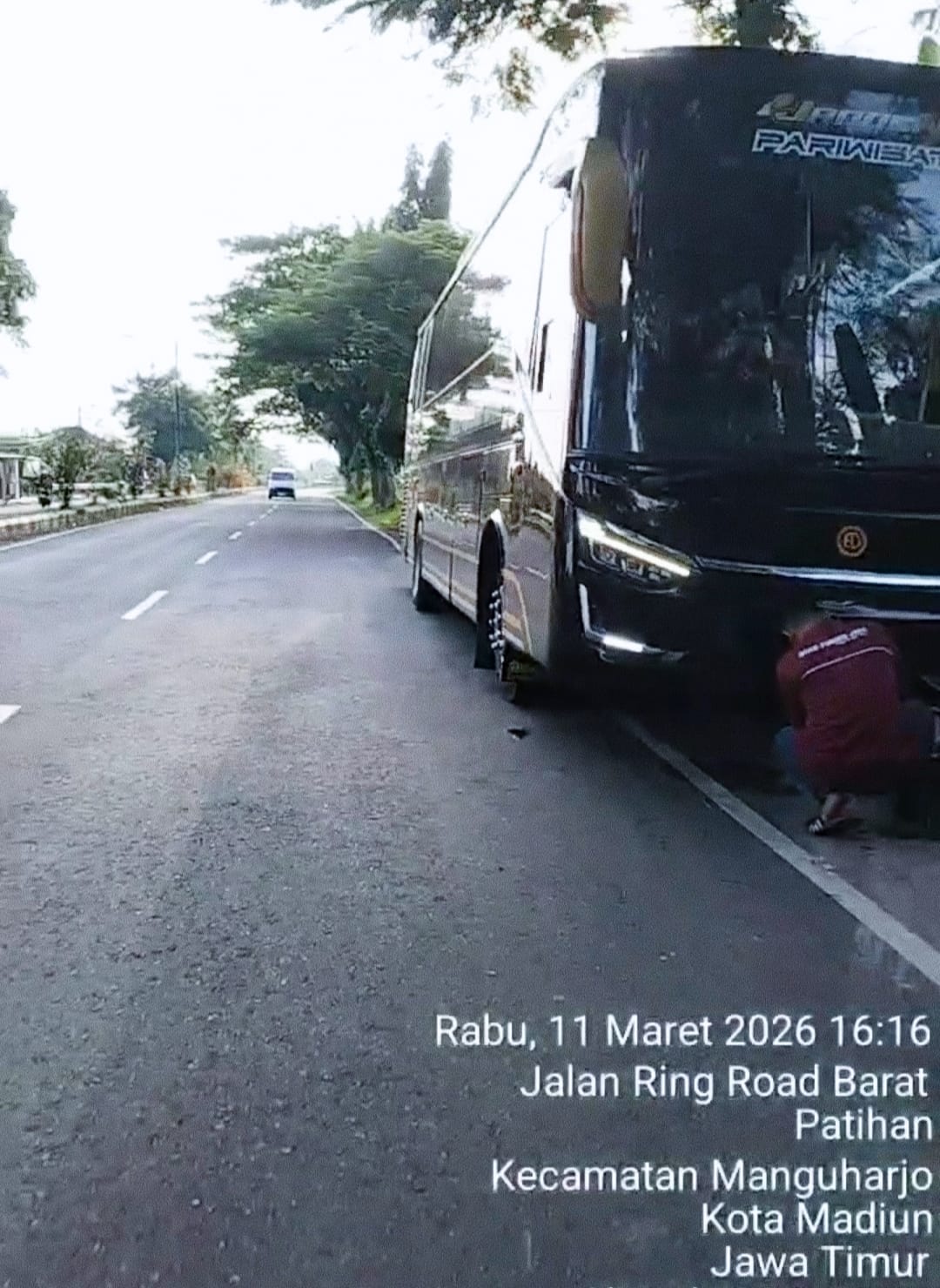 Kembali terpantau salah satu Bus Pariwisata Dengan No.Pol AE 7443 XX baru saja mengisi dari SPBU Ringroad Kota Madiun. pada Rabu (11/03/2026) sekitar pukul 16:00 WIB. Setelah selesai bus kembali melaju dan ditengah perjalanan sempat berhenti untuk mengganti plat kendaraan.