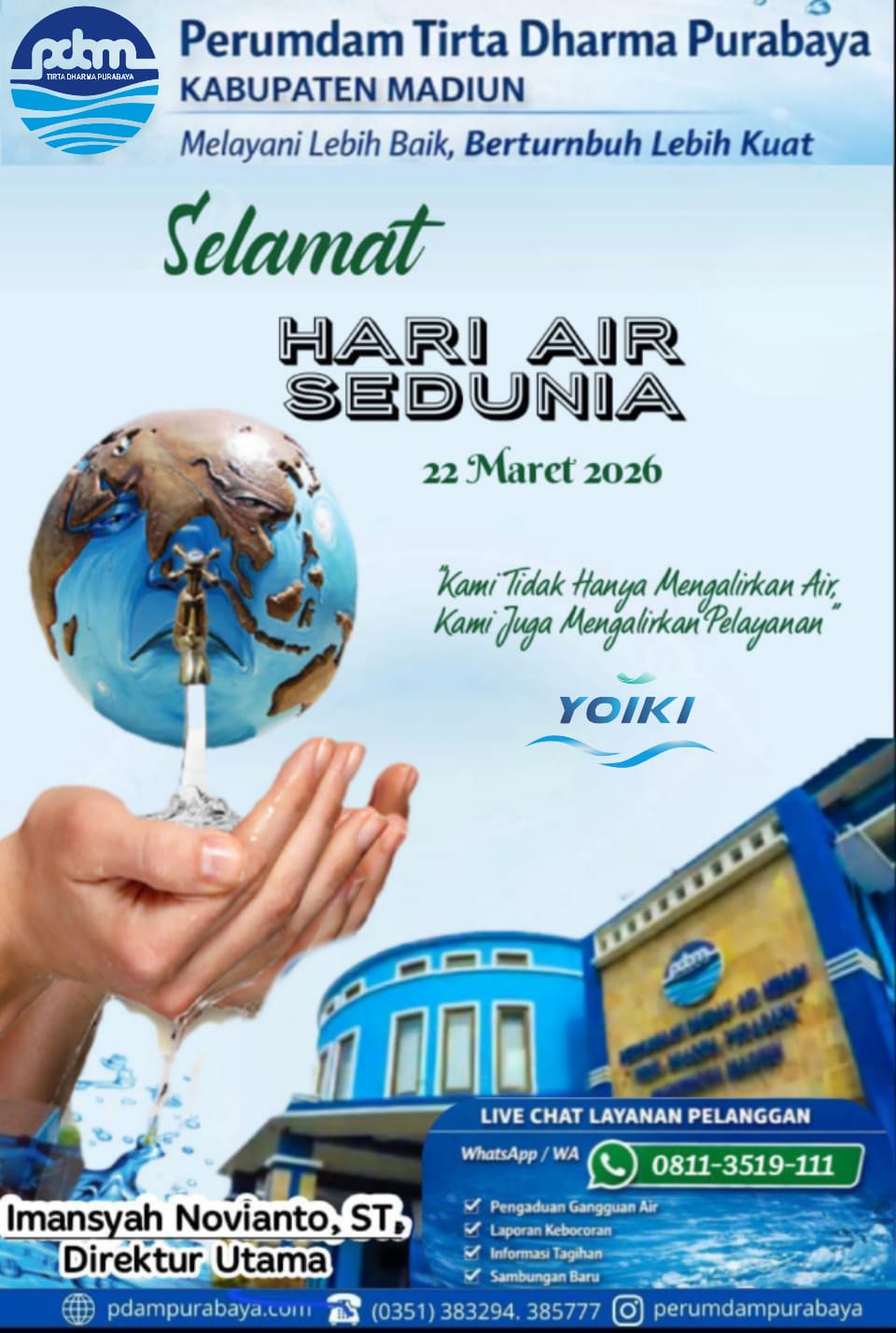 Melalui momentum Hari Air Sedunia 2026 ini, Perumdam Tirta Dharma Purabaya mengajak seluruh lapisan masyarakat untuk lebih bijak dalam menggunakan air demi keberlangsungan generasi masa depan. (Adv)
