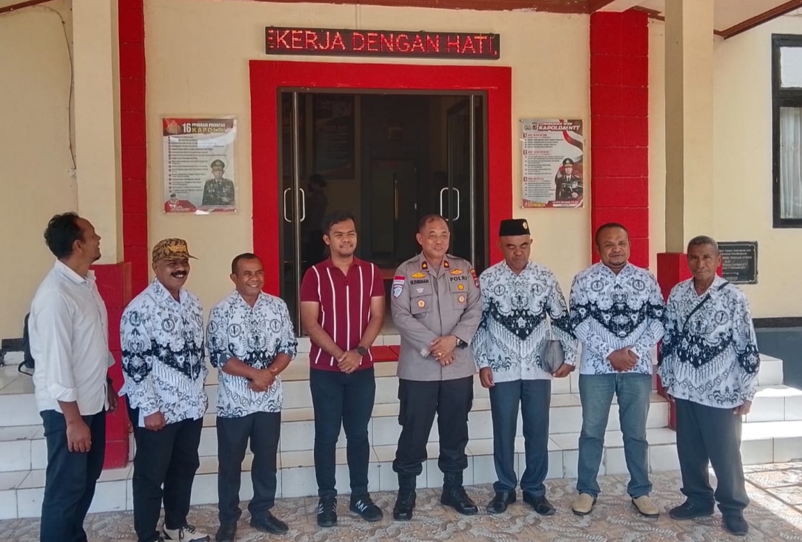Rombongan PGRI TTU dipimpin langsung Ketua PGRI TTU, Dominikus Nitsae, S.Pd dan Kepala SMPN Oenenu diterima Waka Polres TTU, Kompol Sudirman, didampingi Kasat Reskrim dan Kasat Intelkam Polres TTU.