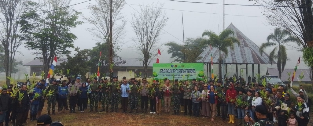 Timor Tengah Utara, NTT, deliknews – Dalam rangka memperingati Hari Bumi Sedunia, Satgas Pamtas RI-RDTL Sektor Barat berkolaborasi dengan JPCC Foundation, BPDAS Benain Noelmina Kupang, dan pemerintah Kecamatan Miomaffo Barat, melaksanakan penanaman 1.000 pohon di wilayah Eban, Kamis (23/4/2026).