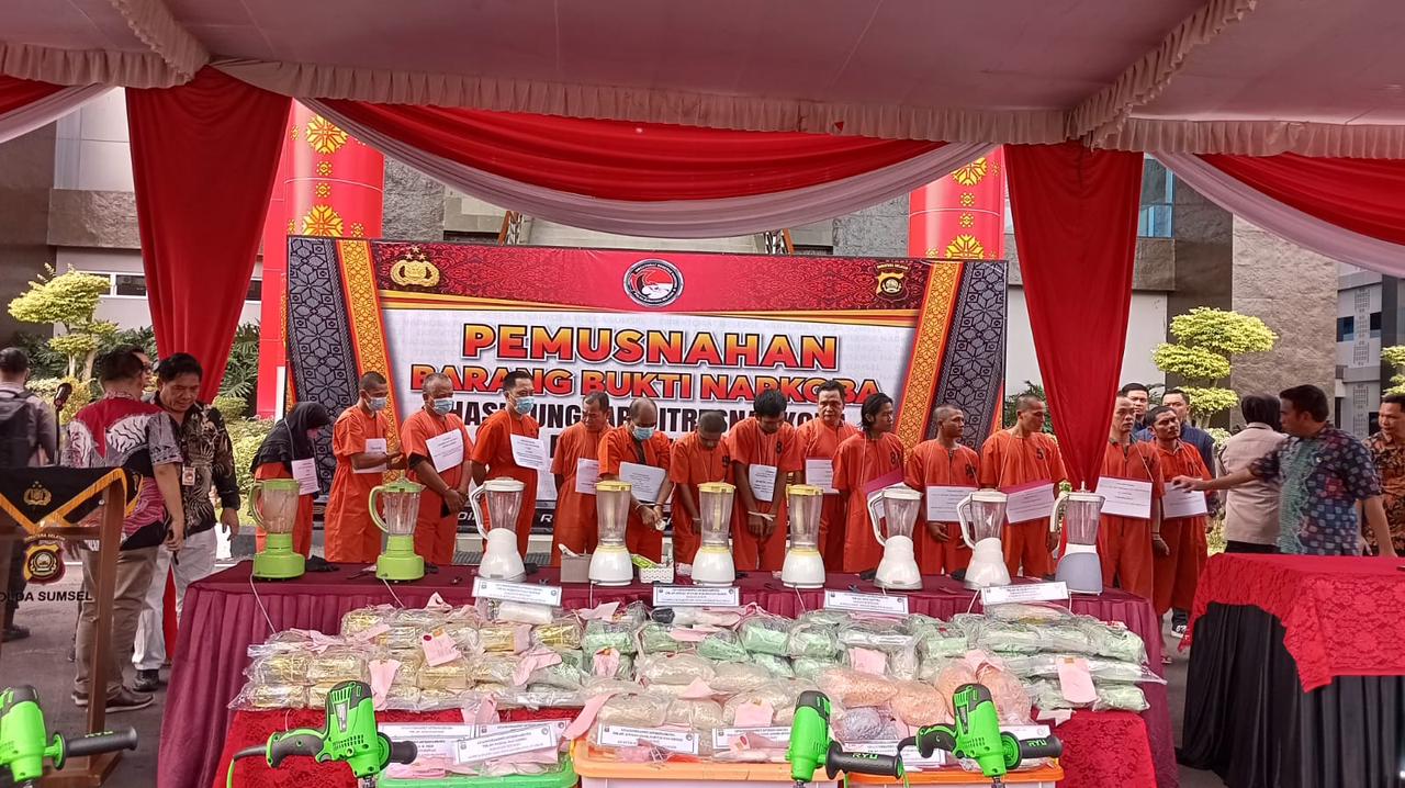 Polda Sumsel Musnahkan Barang Bukti Narkoba Sebanyak 108.997,91 Gram dan Pil Ekstasi Sebanyak 134.487 Butir
