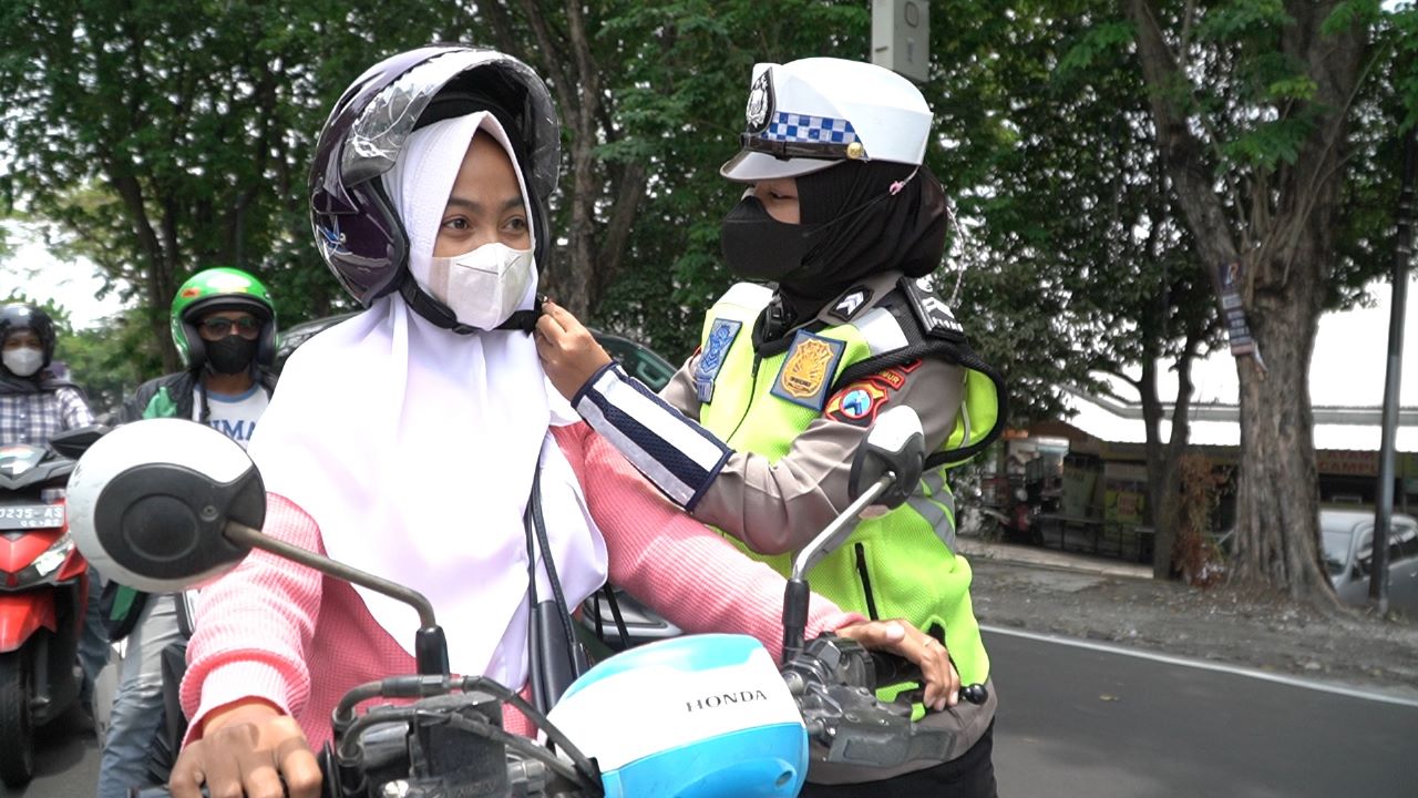 Humanis, Operasi Zebra Semeru 2022 Polisi di Gresik Berbagi Helm Gratis